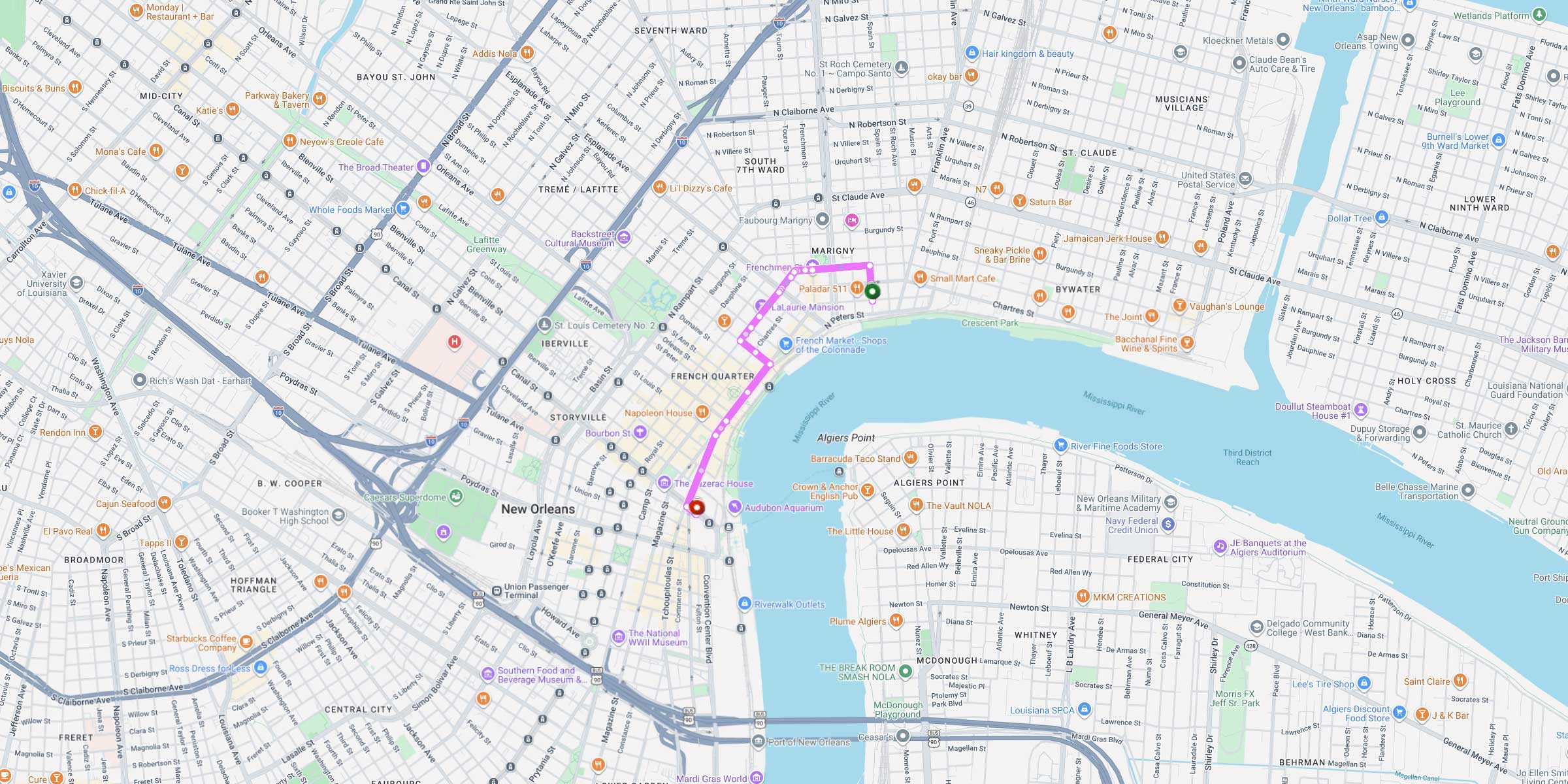 - They head south east on St. Phillip until they reach Decatur St and turn right.