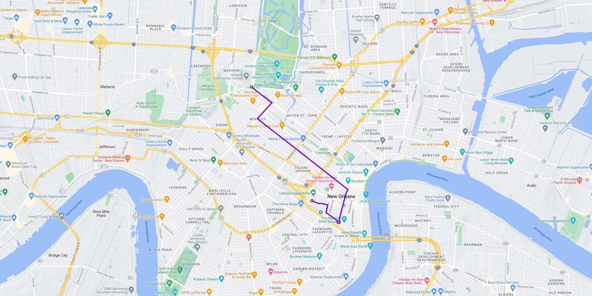 - They take a right onto Carrollton and continue until it intersects with Canal Street.